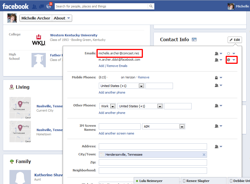 Step 3-Set your actual email address as your primary and hide the FB version from your timeline. Don’t forget to click save!