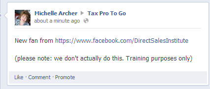 Hopefully the answer is clear. We would NEVER do such a thing. Yet, we see this very same thing a dozen times a day via social media. Entrepreneurs “tag’ the wall of another business with their fan page info. Because the lines are very grey, perhaps some examples may help. Facebook is social media, meaning there are {PEOPLE} behind those computers. Social graces apply. When in doubt, we must ask ourselves “Would I do that at a cocktail party?”.