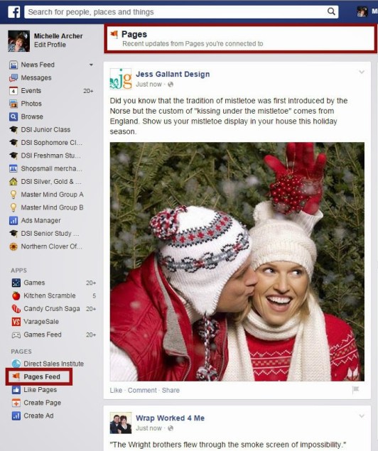 Wondering why your fan page reach is down? It was a November surprise from our friends at Facebook! Around the 14th they slipped something in on us…Pages feed. This tab categorizes posts from pages that you have liked. The bulk of these posts no longer appear in your feed. Could this be why fan page reach is so dismally low? Take a look at your feed with a critical eye. How many page posts do you see that do not say sponsored at the top? I have next to none. What does this mean to YOUR fan page…. it may mean “pay to play” or be relegated to the pages tab.