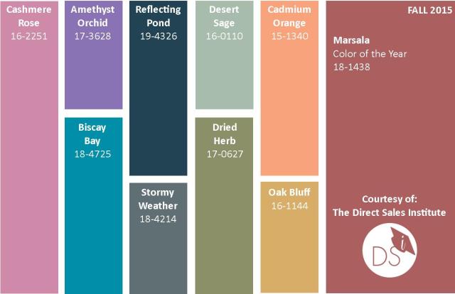 Fall is in more than the air! It’s on runways, in stores and on the street! Here is our 2015 Colour Report. You’ll notice lots of standard warm shades like Cadmium Orange, Oak Bluff and Dried Herb. But there are some lovely cool shades this season that offer a bit of refreshment from the Fall pallet. Look for a gorgeous turquoise shade called Biscay Bay as well as Cashmere Rose (pink) and the radiant orchid trend from last year is revived in Amethyst Orchid. Marsala ( a gorgeous wine shade) will reign supreme!